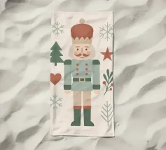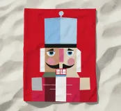Uno schiaccianoci dall'interpretazione geometrica in un moderno design piatto, creato con forme chiare e un equilibrato spettro di colori rosso, beige e blu pastello. La sua espressione pacata e serena conferisce al classico motivo natalizio un tocco fresco e contemporaneo. La simmetria angolare, i baffi e i dettagli minimalisti rendono l'illustrazione una dichiarazione di stile e modernità per il periodo natalizio.