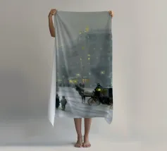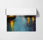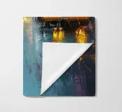 Uno straordinario dipinto digitale di una strada cittadina piovosa, con gli iconici taxi gialli che si riflettono sul marciapiede bagnato. I semafori sfocati e le insegne al neon creano una scena lunatica e suggestiva, che cattura l'essenza della vita e del movimento urbano.