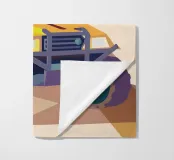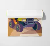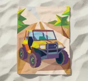 Illustrazione di un veicolo fuoristrada su una strada sterrata con uno stile geometrico moderno.