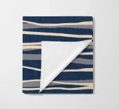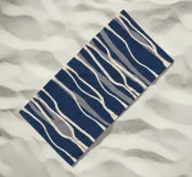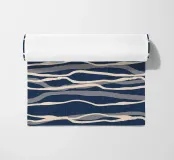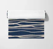 Strisce di onde oceaniche stilizzate in una ricca tonalità di blu retrò. Questo disegno minimale ma fluido cattura il movimento del mare con un tocco nautico vintage. Una stampa perfetta per case al mare, interni costieri o spazi moderni di metà secolo.