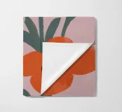 Questo dipinto mostra un motivo di grandi fiori arancioni con centri scuri su uno sfondo rosa tenue. I fiori sono disposti in modo denso e sovrapposto.