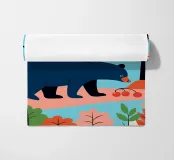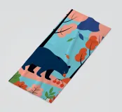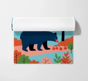 Godetevi la bellezza naturale di una foresta autunnale con questa illustrazione di un orso in cerca di cibo. I colori caldi e il design minimalista creano un'atmosfera pacifica e rasserenante.