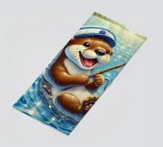 Illustrazione comica della meravigliosa lontra, che si diverte come una lontra mentre naviga nell'acqua, nel suo stile inimitabile.