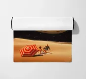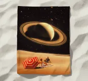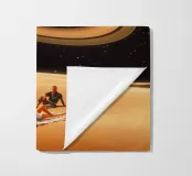 Un collage retrofuturistico di Taudalpoi che raffigura una coppia che ha un appuntamento romantico tra le dune del deserto con Saturno e l'inizio alle loro spalle.