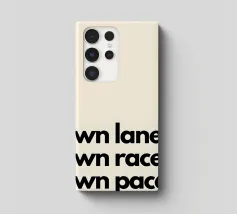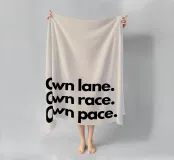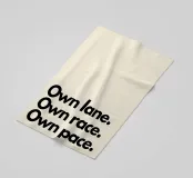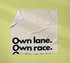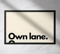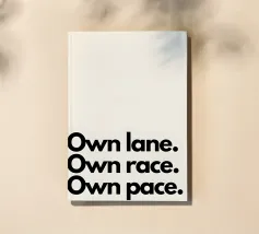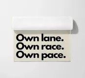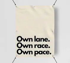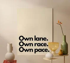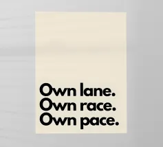 Una citazione motivazionale su sfondo beige che dice: "Own lane. La propria corsa. Il proprio ritmo" in grassetto nero.
