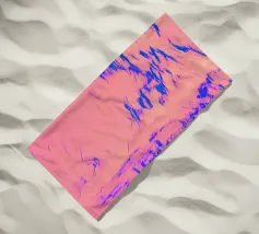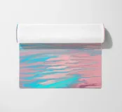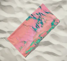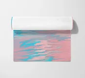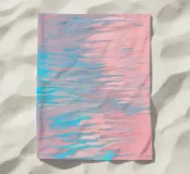 Splendida arte astratta fluida, ispirata a una tranquilla spiaggia rosa, con flussi di colore in blu acqua e rosa pastello.