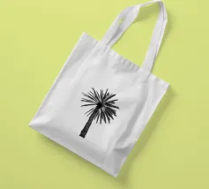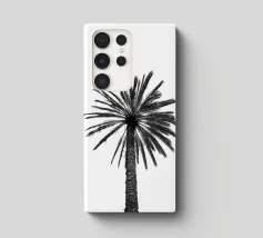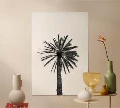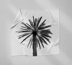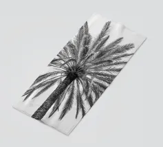 Palma botanica in bianco e nero in un parco di Marrakesh, Marocco.