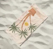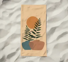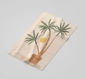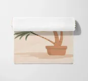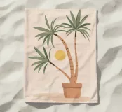 Illustrazione minimalista e chic di una palma in vaso su un morbido sfondo beige. Le linee pulite e la composizione semplice ne fanno un'opera d'arte botanica elegante e senza tempo.