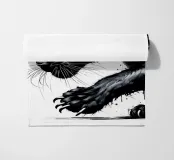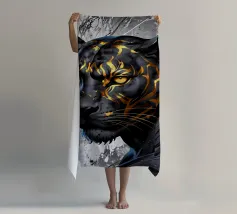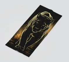 Quadro acrilico astratto moderno di una pantera nera in caccia.