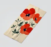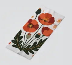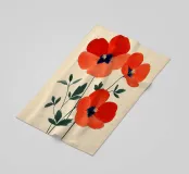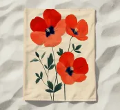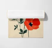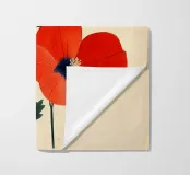 L'immagine mostra tre papaveri rosso vivo con foglie sottili e scure e stami neri e gialli di grande effetto. Lo stile è botanico e dettagliato, con una rappresentazione chiara e artistica delle forme della pianta. Ricorda le illustrazioni scientifiche o gli eleganti studi naturalistici.