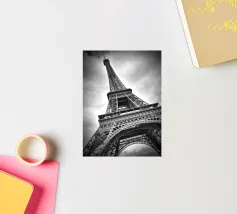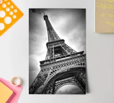 Con i suoi 324 metri, la Torre Eiffel di Parigi domina il paesaggio urbano. È uno dei monumenti più visitati al mondo. Ecco una tipica veduta della Torre Eiffel. Classica impressione monocromatica.