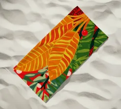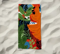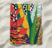 Una vibrante composizione astratta di foglie stilizzate della giungla e di motivi audaci e moderni. Il pezzo è una fusione dinamica, chic ed energica di forme naturali e design grafico.