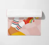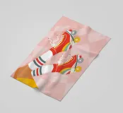 Scatenatevi con questa giocosa opera d'arte di una ragazza pattinatrice!Questa vibrante illustrazione di ispirazione rétro presenta una ragazza in posa a gambe alzate con pantaloncini gialli, calzini sportivi bianchi con strisce blu e rosse e pattini a rotelle rossi con grafica arcobaleno. Su uno sfondo a scacchi distorto rosa pastello, questo disegno trasmette tutto il divertimento spensierato e le vibrazioni funky degli anni Settanta. Perfetta per le ragazze sportive e dallo spirito libero, questa opera d'arte aggiunge un tocco di colore e di attitudine a camerette, accessori, articoli di cancelleria e altro ancora. Ideale per tutti coloro che amano l'estetica retrò e il divertimento.