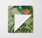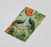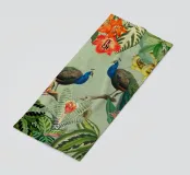 Questo collage vintage cattura l'eleganza dei tropici con una splendida composizione di lussureggianti foglie tropicali e frutti vivaci. Al centro, due splendidi pavoni si ergono con grazia, con le loro piume iridescenti che brillano nei toni del blu, del verde e dell'oro. Il maestoso piumaggio dei pavoni contrasta con il ricco fogliame, aggiungendo un senso di raffinata bellezza. Le sottili texture vintage dello sfondo esaltano l'eleganza generale, mentre i colori vibranti delle foglie e dei frutti danno vita alla scena, evocando un paradiso esotico senza tempo.