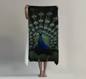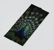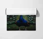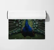 Una fotografia straordinaria che cattura un pavone in un'esibizione completa e ipnotica. I ricchi toni gioiello delle piume e l'imponenza della coda ne fanno un'opera d'arte di grande impatto.