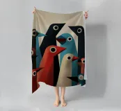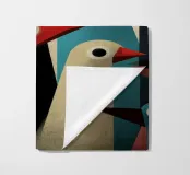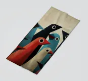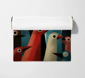 Arte astratta di uccelli con forme geometriche e colori tenui.