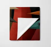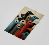 Arte astratta di uccelli con forme geometriche e colori tenui.