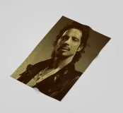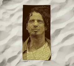Incorniciato da pelle e ombre, Chris Cornell risplende con calma e intensità. Una miscela di rock e anima poetica, catturata con pennelli e toni.