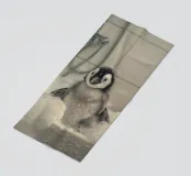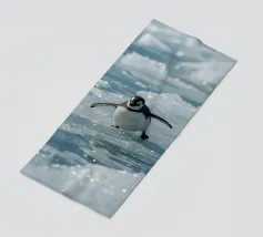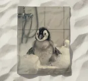 Un pulcino di pinguino è circondato da soffici bolle mentre è seduto in una vasca da bagno. L'ambientazione del bagno e l'atmosfera giocosa creano una scena affascinante e stravagante.