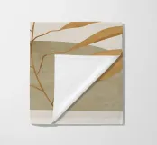 Una composizione botanica astratta con foglie stilizzate e forme geometriche in tonalità calde e naturali.