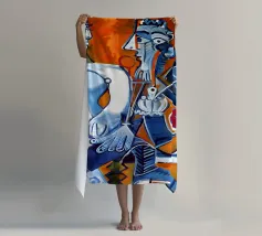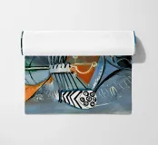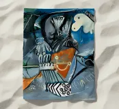 Questa complessa stampa picassiana presenta una composizione astratta con forme umane e animali frammentate, in particolare un uccello ed elementi che ricordano un volto e delle mani. Realizzata con linee decise e un'impressionante tavolozza di blu, grigi e arancioni, l'opera d'arte evoca un senso di movimento dinamico e di realtà decostruita. Il gioco di forme geometriche e curve organiche crea una narrazione visiva stimolante, caratteristica delle influenze cubiste e surrealiste. Questo poster digitale di alta qualità (7000x5000 pixel, 300 dpi) cattura magnificamente la profondità intellettuale e il genio artistico dell'artista.