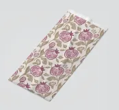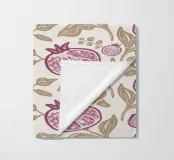 Motivo di frutti, foglie e fiori di melograno in rosa e beige.