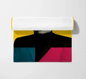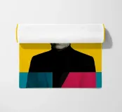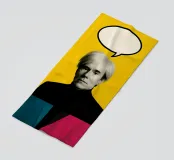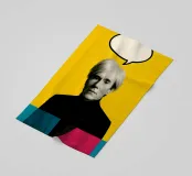 Andy Warhol, il re della pop art, in un omaggio con un colpo di scena: una bolla vocale vuota fluttua sopra la sua testa - su uno sfondo giallo brillante, combinato con allusioni colorate CMYK in ciano, magenta e nero. Tra ritratto, pop e post-ironia. Fa parte della serie Geometric Masters, che decostruisce figure artistiche iconiche utilizzando forme e colori geometrici. Forte, intelligente, moderno.