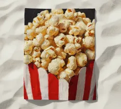 Provate il piacere dei popcorn in ogni boccone! Questo disegno presenta popcorn deliziosi e appetitosi, perfetti per gli amanti del cinema, delle occasioni casual e degli spuntini divertenti.