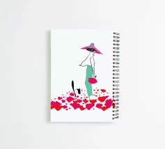 Donna minimalista con cappello, gatto in un mare di papaveri