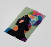 Ritratto di profilo stilizzato di una donna nera con motivi astratti e colorati che le adornano i capelli o il copricapo. Lo sfondo è scuro, per far risaltare i tratti marcati della donna e i colori vivaci con un tocco artistico.