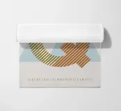 Q -TYPEFACE in un design senza tempo - poster tipografico con colori vivaci e un gioco di forme sullo sfondo.
