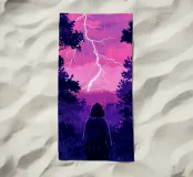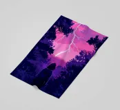 Ragazza in una giungla bloccata in una tempesta di fulmini notte Lofi Art