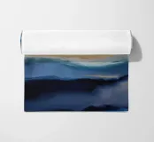 Le onde dai toni blu si increspano come una leggera nebbia sulle montagne lontane al tramonto.