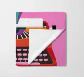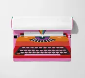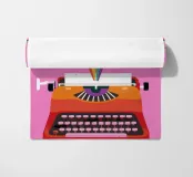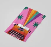 Illustrazione di una macchina da scrivere vintage da cui fuoriesce un vibrante arcobaleno. L'opera è un simbolo potente, gioioso e creativo della scrittura, dell'immaginazione e della narrazione.