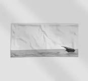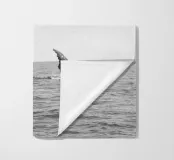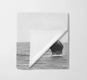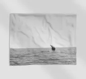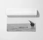 Un momento di calma in mare aperto: la pinna di una balena che emerge dall'acqua nel mezzo del vasto oceano. Semplice in bianco e nero. Tranquillità per ambienti minimalisti.