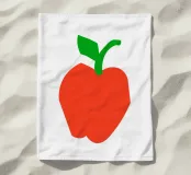 Una raffigurazione semplice e decisa di una mela rossa con gambo e foglia verdi, su sfondo bianco. Il design utilizza forme basilari e colori solidi per trasmettere l'immagine.