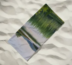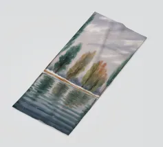 Una tranquilla scena fluviale in cui gli alberi danzano sull'acqua in forma speculare. Un paesaggio lirico di equilibrio e armonia.