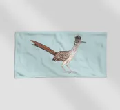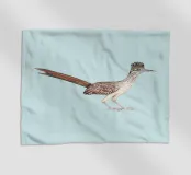 Disegno a matita colorata di un roadrunner maggiore. L'uccello è visto di lato, in modo che la sua lunga coda sia ben visibile nell'immagine.