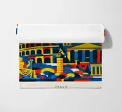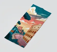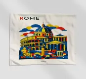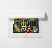 A bold, graphic celebration of Rome, where ancient grandeur meets contemporary design. Iconic landmarks are layered into a confident composition, rendered with clean geometry and vibrant colour blocking that captures Rome’s timeless presence without literal detail. Classical forms and monumental silhouettes create depth and rhythm, conveying history, power, and enduring beauty.