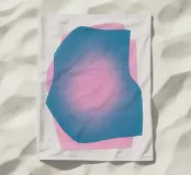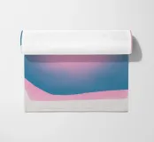 Un morbido gradiente fonde il blu e il rosa vibranti, formando forme organiche astratte e sovrapposte. Le transizioni morbide e il bagliore etereo creano una visione rilassante.