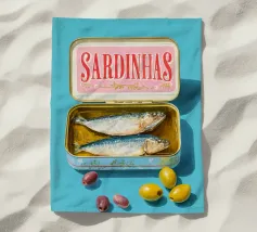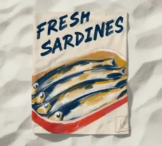 Fox & Velvet's retro sardines print featuring some funky fish in a tin.