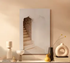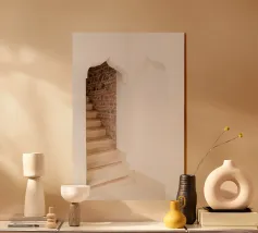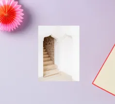 Entrate nel cuore del fascino marocchino con questa scala ad arco bianca splendidamente immortalata in un riad tradizionale bohémien. Le curve aggraziate dell'arco e i dettagli intricati dell'architettura invitano a un senso di calma e vagabondaggio, perfetto per aggiungere un tocco di eleganza marocchina a qualsiasi spazio. L'estetica pulita e minimale delle pareti imbiancate a calce contrasta con le ricche texture e le tonalità della terra del riad, creando un'atmosfera serena e senza tempo. Ideale per gli amanti della fotografia di viaggio, dell'arredamento bohémien e degli interni di ispirazione mediterranea.