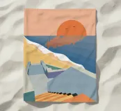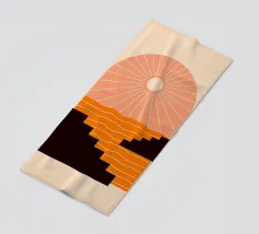 Astrazione costiera - La calma solare incontra la geometria 🎨🌞 Questo disegno mette in scena un paesaggio costiero di ridotta eleganza: un grande cerchio arancione del sole domina il cielo, al centro del quale due uccelli animano lo scenario - simbolo di libertà e movimento. Al di sotto, il mare blu si estende in zone chiare, mentre la linea bianca ondulata sembra un taglio tra l'acqua e la sabbia. Particolarmente suggestiva: la scala geometricamente stilizzata in basso conduce alla spiaggia come un invito grafico. Le sue forme minimaliste - gradini, balaustra e ombra.