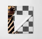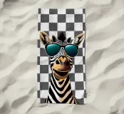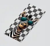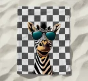Questa zebra funky sfoggia occhiali alla moda su uno sfondo a scacchi ondulati, unendo il fascino selvaggio a un tocco retrò. Un pezzo forte per ogni spazio!