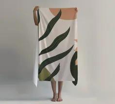 Una composizione elegante e minimalista che presenta forme botaniche delineate su blocchi di colore tenui e organici. L'opera d'arte fonde il disegno lineare con le forme astratte per un'estetica naturale sofisticata e moderna.