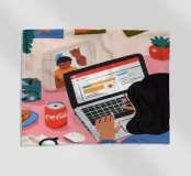 Una persona lavora al computer portatile circondata da libri, carte ed elementi decorativi. Le piante e l'ambiente caldo migliorano l'ambiente produttivo.