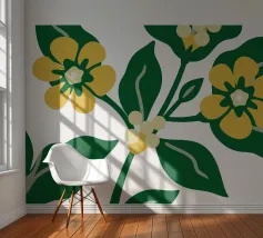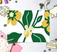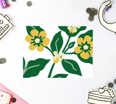 Un disegno di sfondo con un tema floreale fresco, caratterizzato da fiori e fogliame di varie forme e colori, che creano un'atmosfera allegra e rilassante.