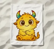 Un simpatico e soffice mostro giallo con corna colorate e grandi occhi: un motivo allegro per i bambini e gli appassionati di disegni kawaii. Simpatico mostro in giallo allegro Corna arcobaleno colorate come richiamo visivo Design fumettoso e amichevole Ideale per i bambini e gli appassionati di mostri Perfetto per gli amanti del kawaii e dei cartoni animati