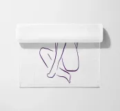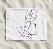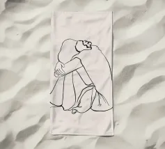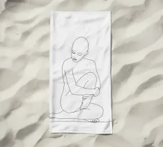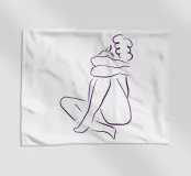 Un semplice disegno al tratto raffigura una persona seduta con i capelli ricci, le braccia avvolte intorno alle ginocchia. Lo stile minimalista utilizza linee morbide e fluide per trasmettere un senso di calma e introspezione.