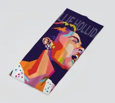 WPAP (Wedha's Pop Art Portrait) è uno stile artistico geometrico, vibrante e colorato che enfatizza gli angoli acuti e i contrasti di colore. Un ritratto di Sinéad O'Connor in stile WPAP presenterebbe la sua sorprendente struttura facciale con forme spigolose e taglienti in colori vivaci e contrastanti. La sua caratteristica testa rasata e il suo sguardo intenso sarebbero accentuati da audaci motivi geometrici. L'opera d'arte catturerebbe la sua profondità emotiva e il suo spirito ribelle, riflettendo la sua eredità di musicista e attivista senza paura.
